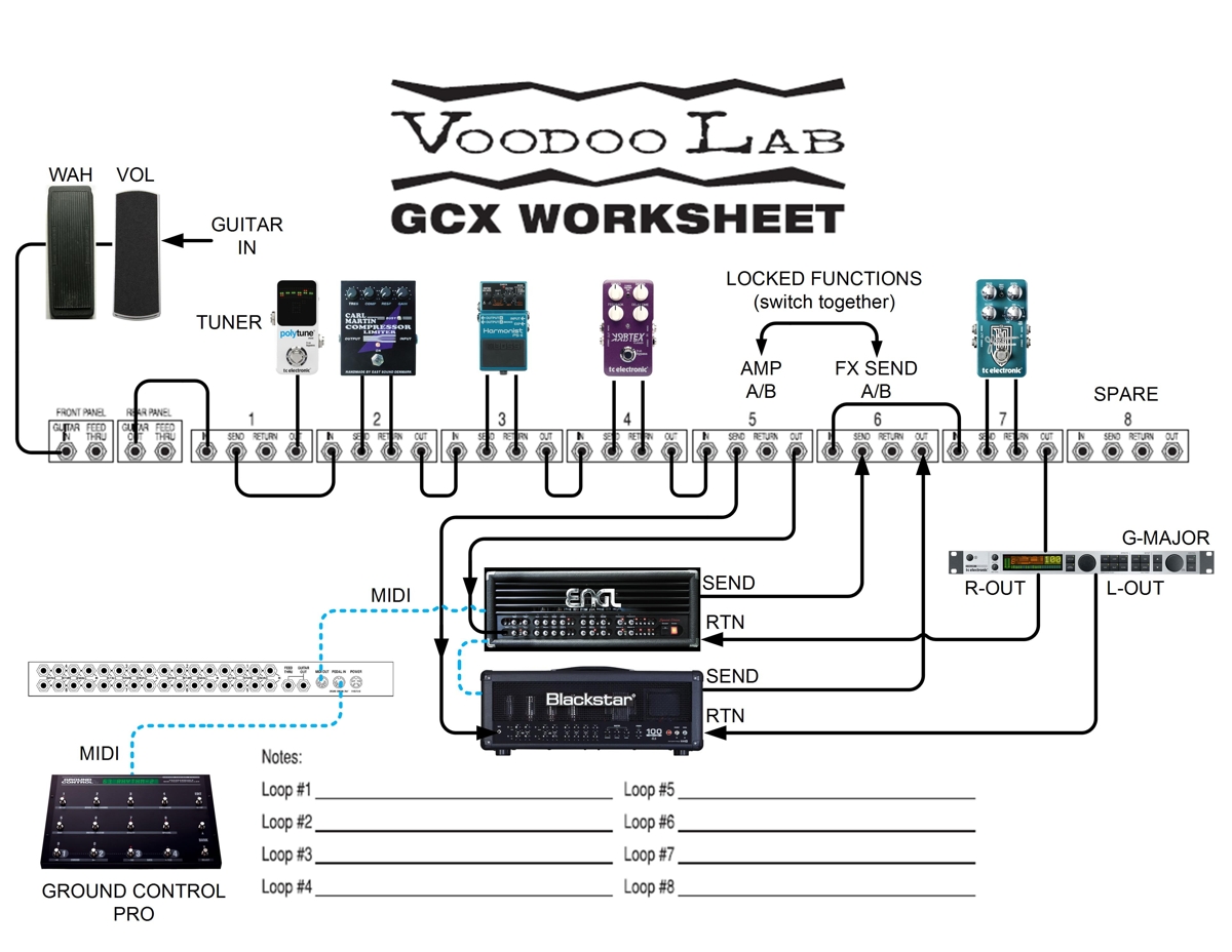 On peut éliminer la FV500, la Whammy et la Pleure Bébé puisque tu dois les avoir au pied. L'AB box aussi puisque tu joues toujours avec les 2 amplis.