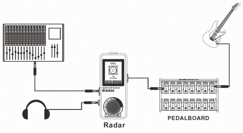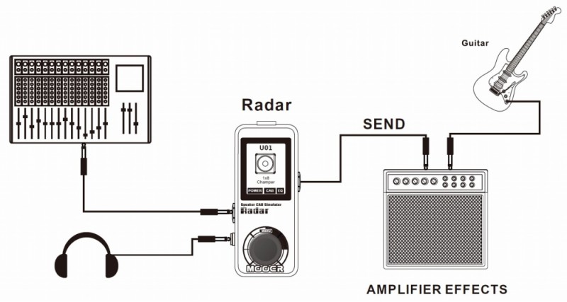 - Send de la boucle d'effet de l'ampli => Radar => table de mixage ou carte son