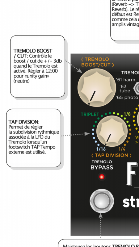 J'ai testé pas mal de trems ces derniers temps, et j'ai moi même un Vibrolux Tweed (avec un vrai Temolo Bias Vary à lampe), je dois dire que la Flint s'approche vraiment très près des vrais tremolos d'amplis (je connais aussi assez bien les trem des Blackfaces).