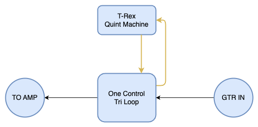 One Control que j'ai pu essayer, du moins pas dans le contexte du pedalboard complet. Par contre, j'ai aussi des interférences si je me branche directement dans l'un des loopers (Bright Onion ou One Control) suivi d'une des pédales problématiques, puis directement dans l'ampli. Encore une fois, j'ai ce bruit même avec les pédales éteintes et le volume à zéro. J'ai moins de problèmes si je branche toutes mes pédales en série, sans les loop switchers, mais