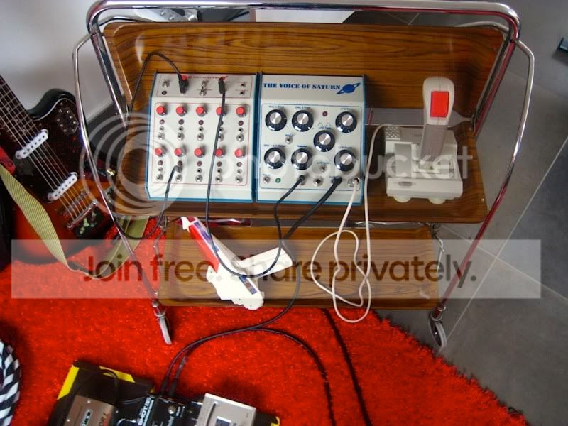Sinon la SD-1 est moddée en Clay Jones overdrive, et il y a une Aramat Green Machine Overdrive planquée derrière avec une MJM London Fuzz II(silicon). Couplée au clone de Dallas Rangemaster c'est pas mal du tout, surtout quand j'enclenche la vibe (Rocktron). Ça fout un bordel innommable mais j'aime bien
