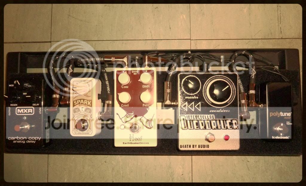 Par contre, là, je me lance dans un projet Power Pop très 90s. et dans ce cas, c'est la Hoof qui va me servir de guitare rythmique, auquel cas la Death by Audio va me servir de réserve de gain et la Spark de réserve de volume, le Delay étant juste un plus pour certaines parties.