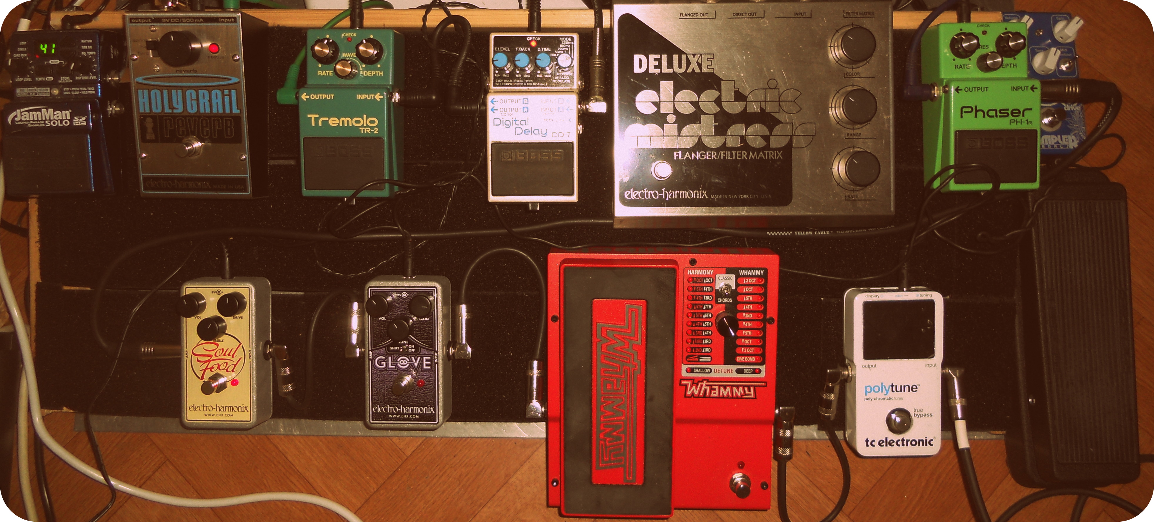 Ce qui me surprend en voyant ton matos c'est le parti pris tout numérique au niveau des delay / modulation et aussi la présence d'une DS-1 au milieu de pédales bien plus réputées.