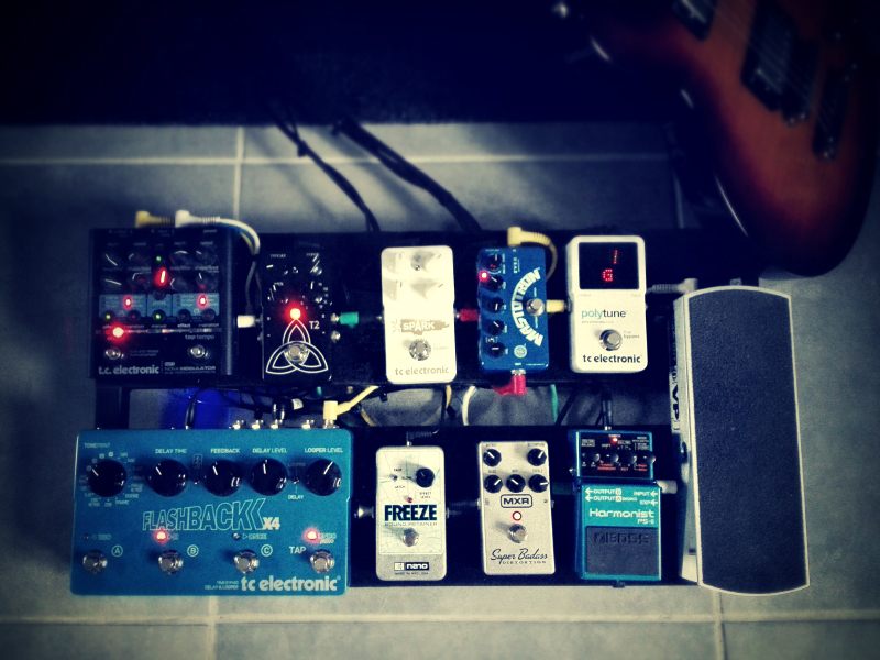 De gauche à droite : Nova Modulator, T2 Reverb, Spark Booster et tout à droite le Polytune.