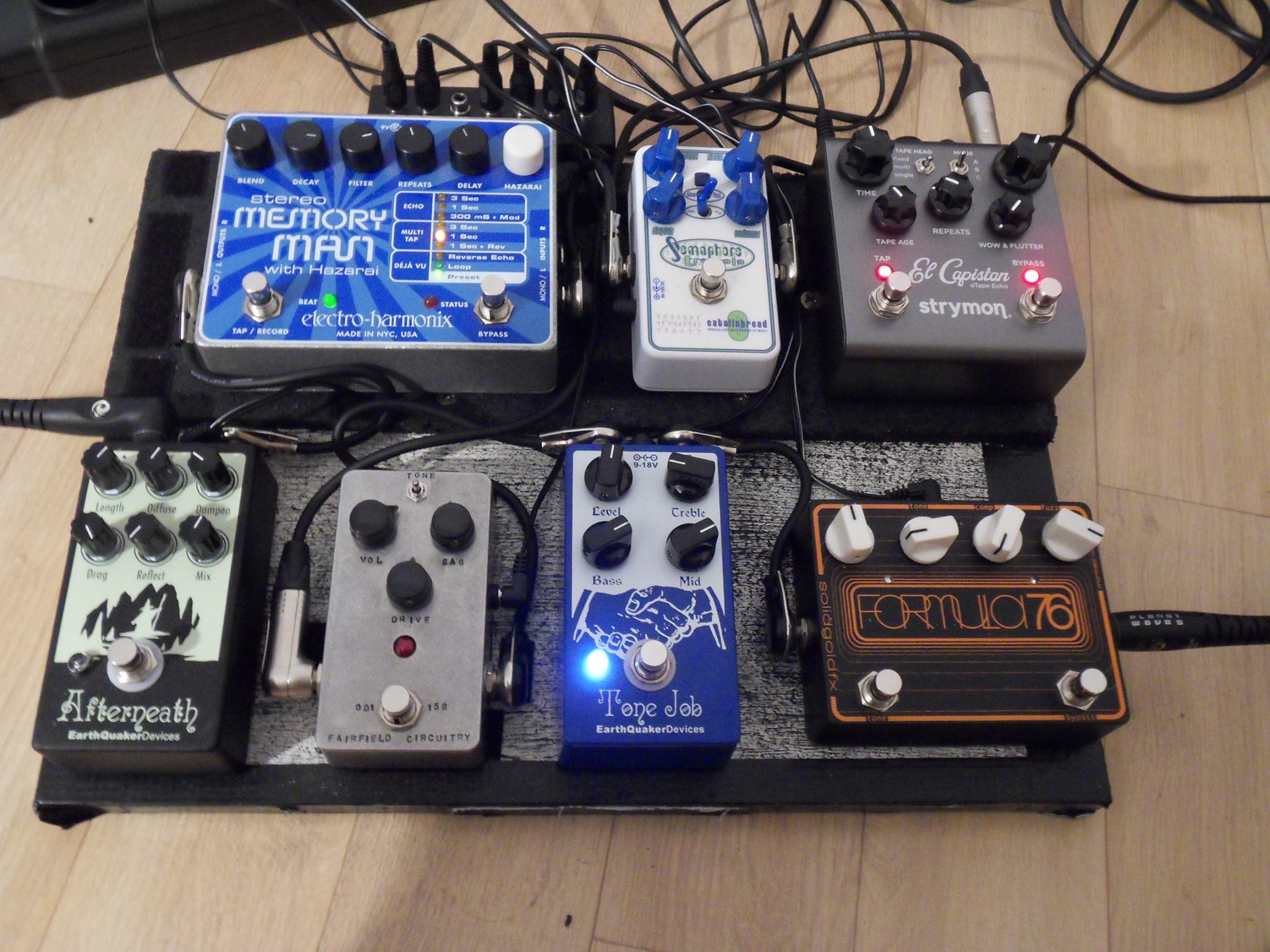 J'ai pas de boucle non plus, et en fait je cherchais une pédale très transparente qui me permettrait à la fois d'égaliser de façon simple en changeant d'ampli (selon la maison, les concerts avec les amplis prêtés, la salle de répèt avec du transo, etc...), de booster la Fairfield jusqu'à obtenir une sorte de fuzz moelleuse, et de travailler la sortie de la SuperFuzz.