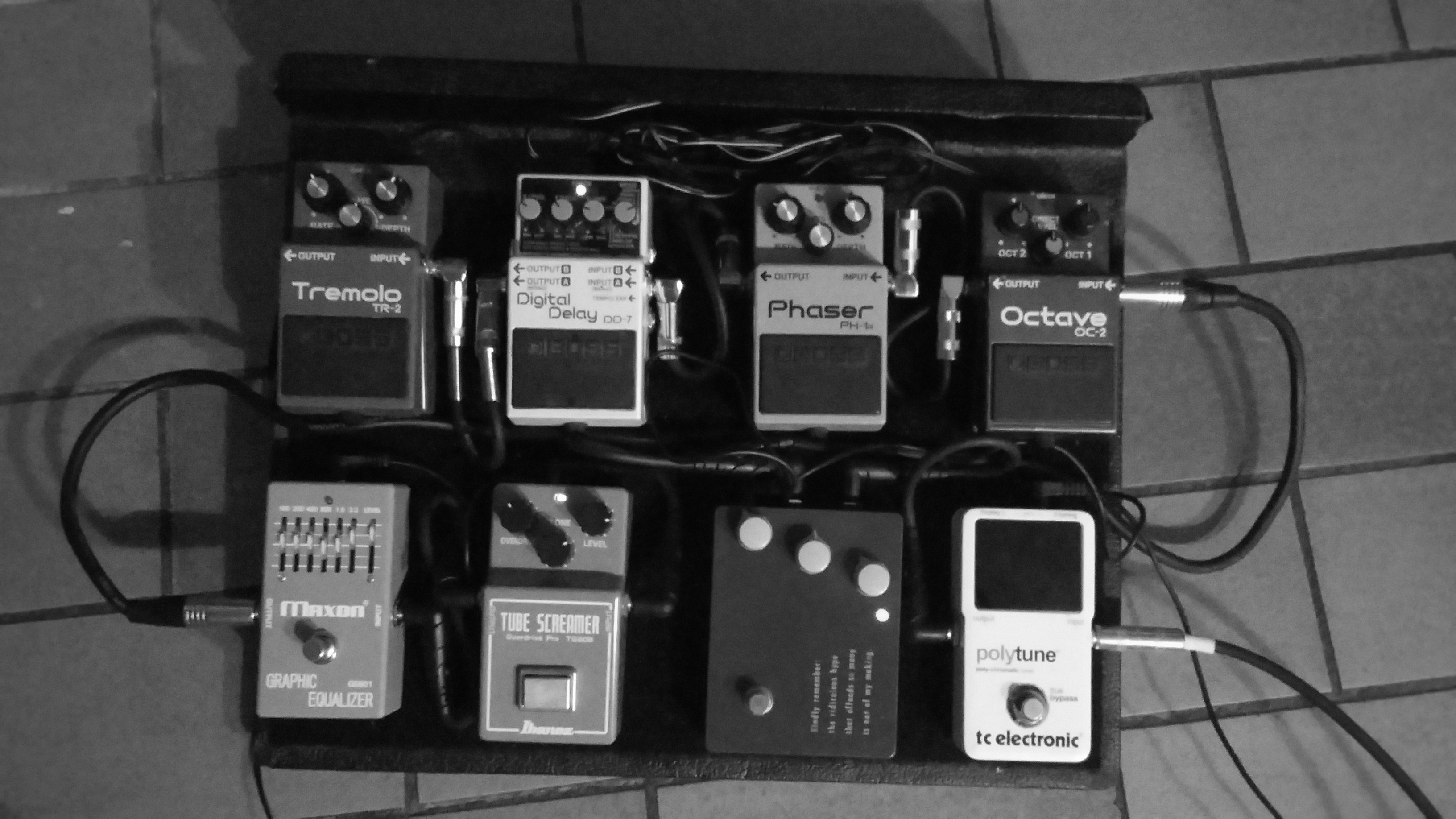 Et oui, j'utilise beaucoup de Chorus, surtout quand j'enregistre. Empiler des prises en sons clairs avec un chorus, ça permet d'avoir un gros son sans forcément utiliser des masses de saturation. Franchement, si quelqu'un me propose un bon chorus (genre CE-2 avec un poil plus de possibilités) qui ne prenne pas trop de place sur le pedalboard, je veux bien lui échanger le CE-20 !