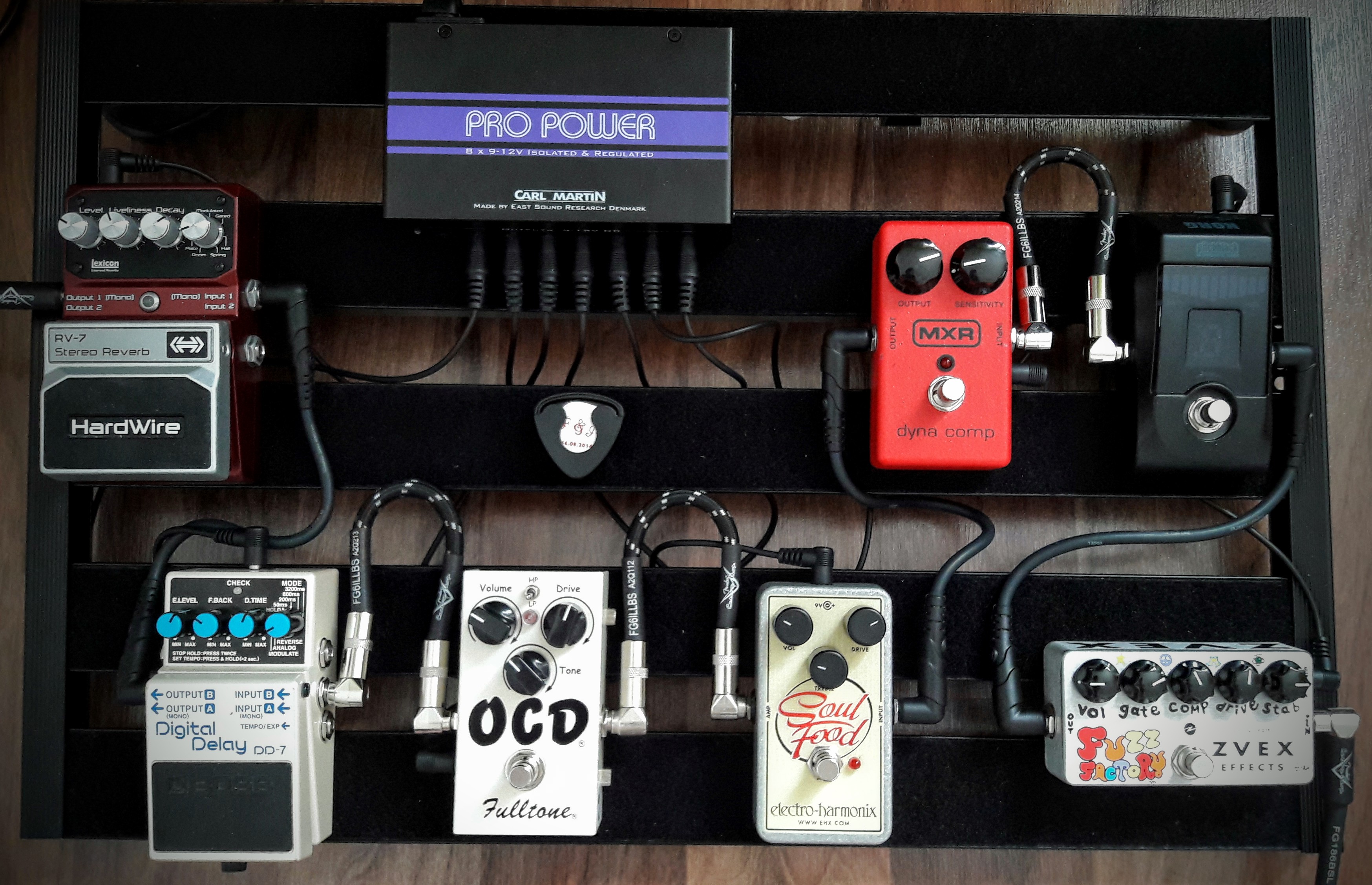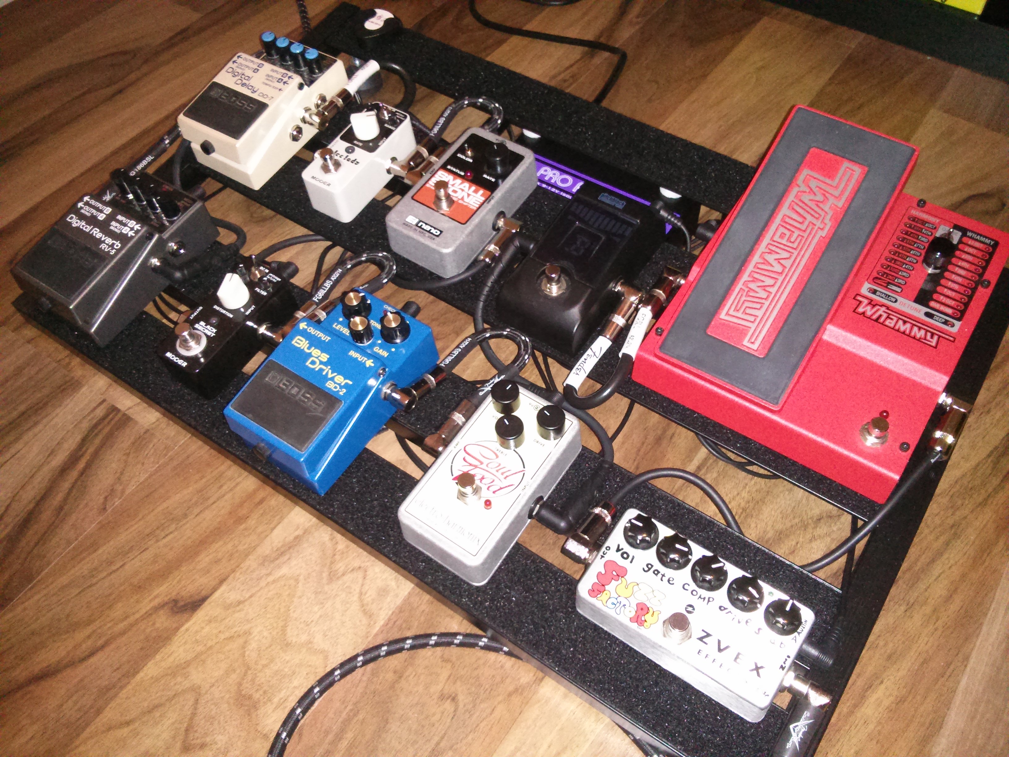 Vu que je le déplace pas beaucoup, j'ai mis le maximum dessus, mais si je devais m'en servir en live, je virerais la Blues Driver et peut-être une des deux pédales de modulation.