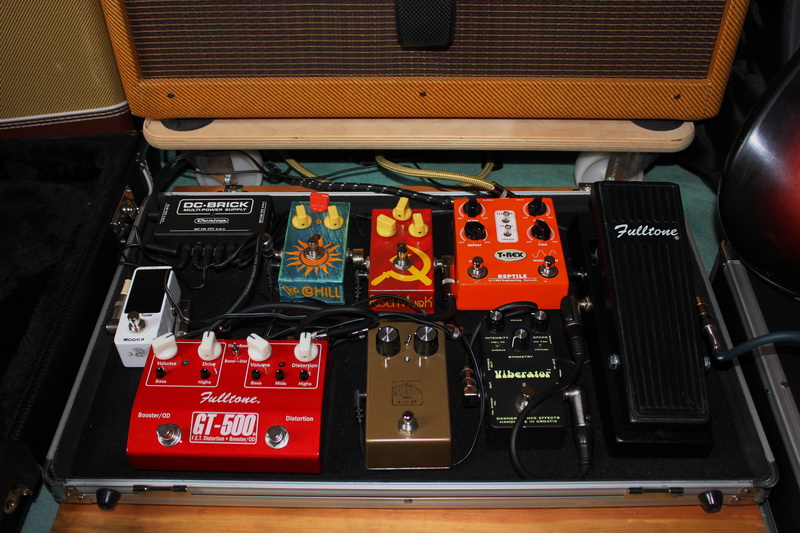 Peut-être essayer de faire le tri pour ne garder que deux ou trois pédales de drive : 5 od/distos, c'est beaucoup. Quitte à les remplacer par autre chose (saturations de nature différente, type fuzz, ou avoir deux boosts - pre et post gain, ou encore un eq).