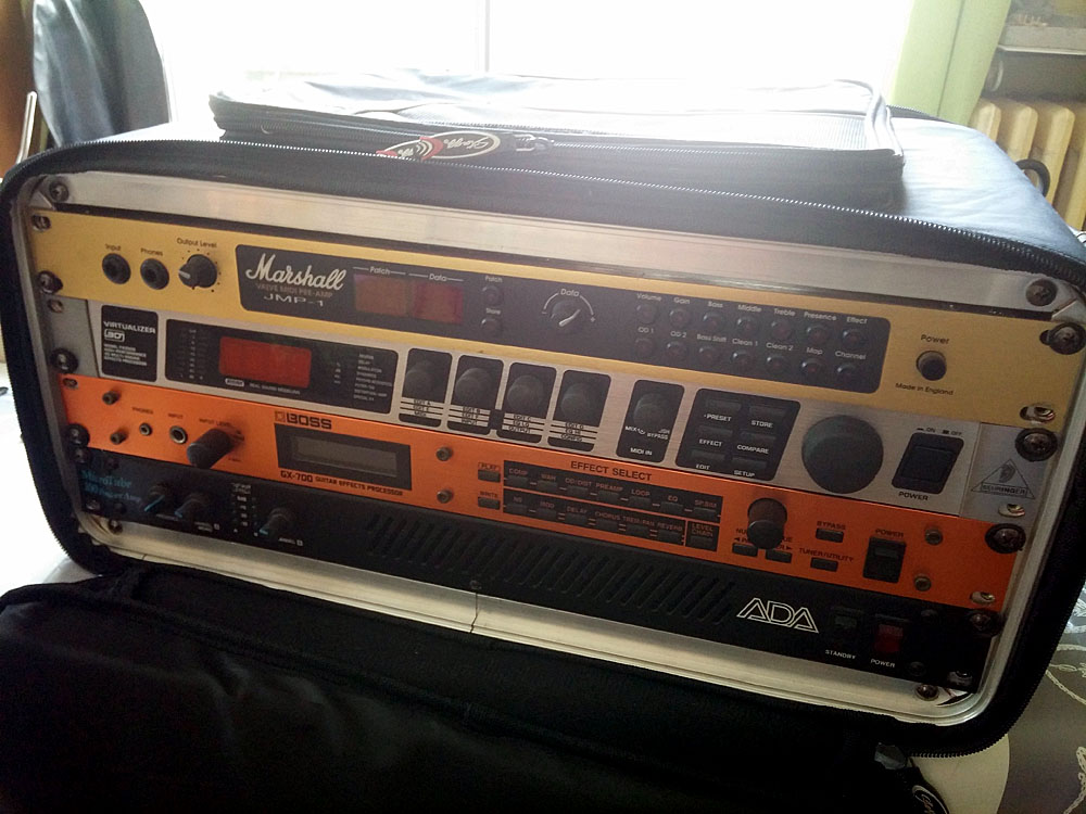 L'idéal serait de remplacer la Caline par une pédale que je fabrique, histoire d'avoir un truc plus petit (ça rentre dans du 125B sans souci je pense, genre un clone de Jan Ray avec un boost par exemple), ça me permettrait une pédale de drive de plus genre une Big Muff (pas sûr que ça colle avec mon Orange) ou une FuzzFace, et de remplacer les deux delay par une Timeline, qui ferait aussi looper (mais là le budget explose pour moi...) J'avais pensé au DL4, mais il a l'air énorme et souci de fiabilité visiblement...