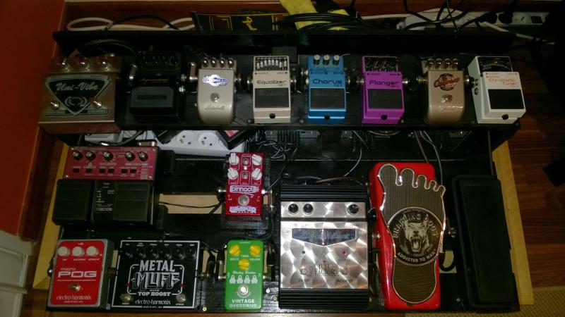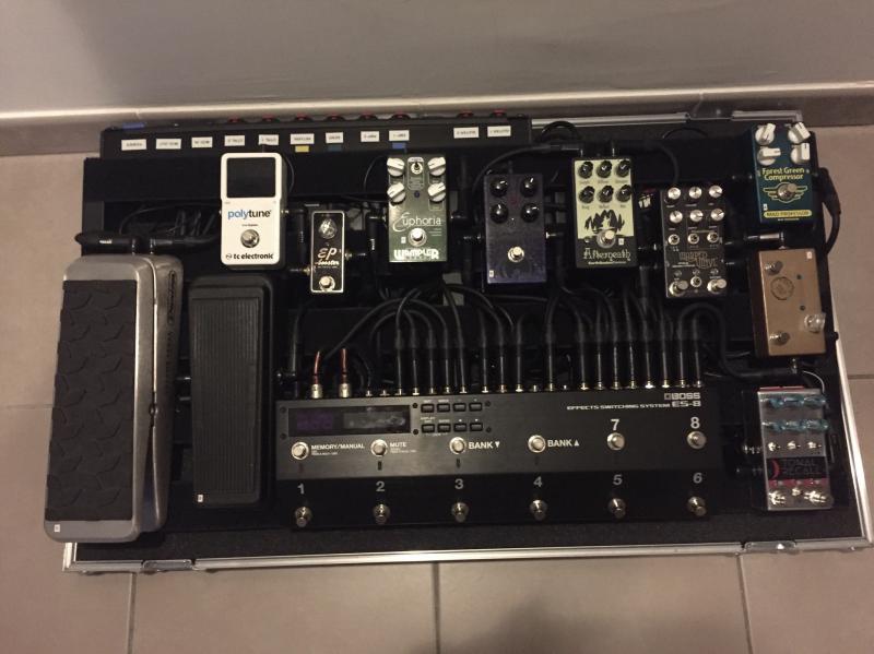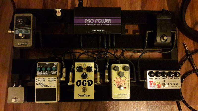 Donc avec les 2 canaux d'ampli pour la saturation, ma pédale volume et éventuellement un effet en façade (j'ai bien envie d'utiliser cette pauvre nu-vibe esseulée en groupe, pour avoir mon son de "caractère".. dans l'idée que tu écrivais l'autre jour, zepot)... fini les pedal boards