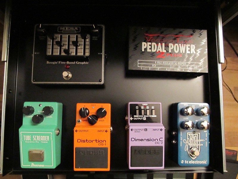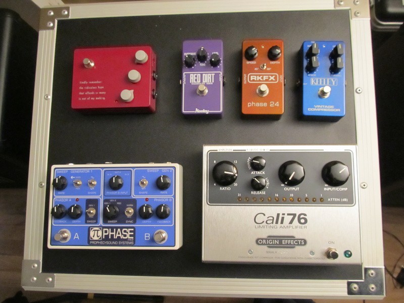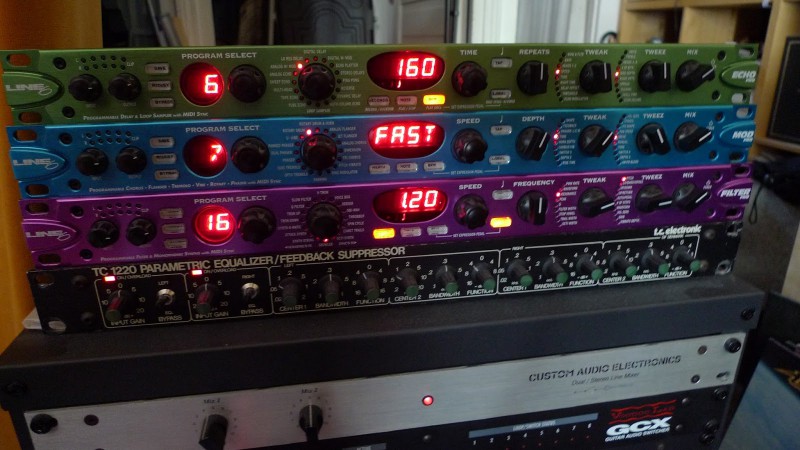 Le valve fx va débarquer, je l'ai juste mis dans le rack pour pratiquer à la maison (il est branché dans la console) et parce j'aime certains sons.. Il va y avoir un autre tiroir à la place pour mettre le Cali76 et le Pi-phase. La boss distortion ne fera pas partie du rack et il y aura que 2 overdrive. Les pédales vont tous dans le rack Gizmo devant le triaxis et le dreamcape va servir de flanger. Le rack gizmo avait été acheté en prévision d'être utilisé avec un Mark V mais j'ai eu le triaxis et le 2:fifty neufs pour $1100 CAD (730 euros) chacun d'un magasin qui a liquidé son stock mesa car il ne vendrait plus de mesa. Je regrette de ne pas avoir aussi acheté le TA-30 qu'il vendait neuf à $899 CAD (590 euros).