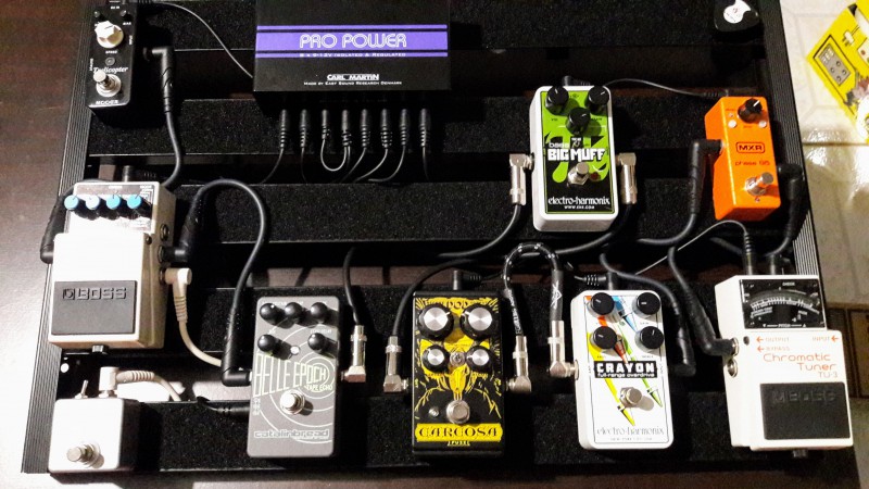 Je garde pour le moment la Trelicopter et la Nano Bass Big Muff parce qu'elles ne font pas doublon avec le reste. J'avais envisagé de reprendre une Whammy ou Pitchfork et un compresseur mais bon, c'est encore en réflexion.