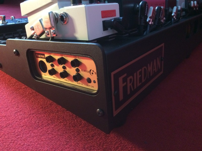 Il s'agit donc d'un Friedman 1530 Platinum (oui j'ai craqué) avec Buffer6Bay ci-dessus et alimentation Powergrid 10 (10 sorties 9v à 350 mA).