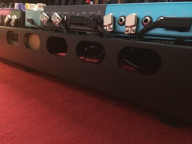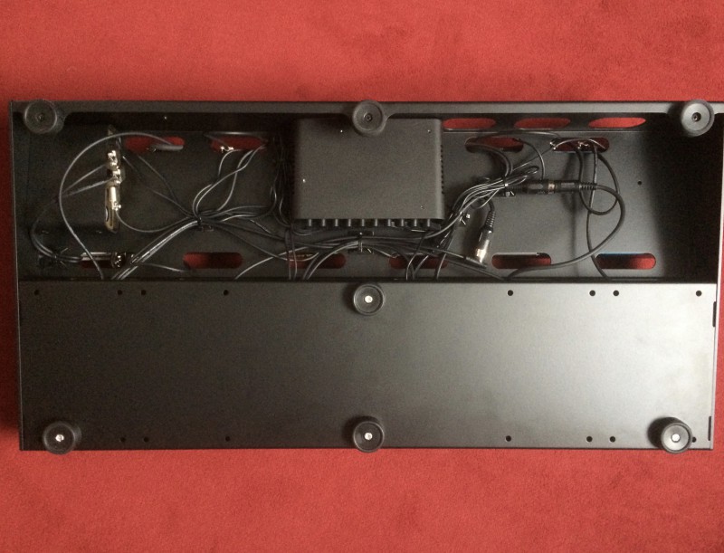 Pour les plus maniaques d'entre nous; la partie du dessous, l'avantage d'avoir un étage est que tous les câbles sont cachés et on garde un premier rang très proche du sol, c'est très pratique pour le looper et le switcher qui est assez haut.