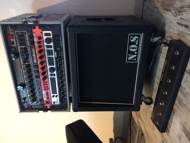 j'utilise deux combos en stéréo, un yamaha DG80-112 dont je me sers également de la partie préamp, et un vieux peavey bandit qui est juste là pour la stéréo