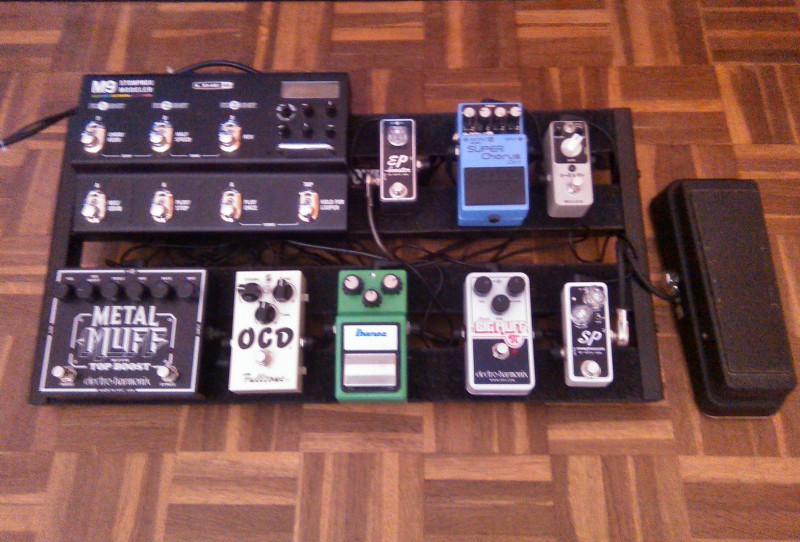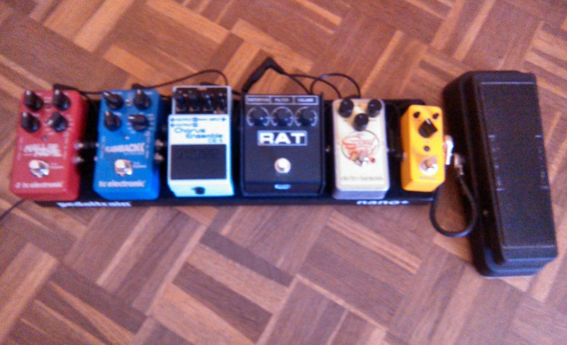 Mais comme il est difficile de trimbaler deux amplis (tout le monde ne s'appelle pas Eric Johnson ou SRV ou qui sais-je encore...) j'ai trouvé le compromis le plus satisfaisant pour le moment avec un ampli un peu hybride de ma conception et quelques pédales finalement relativement assez basiques si je puis dire.