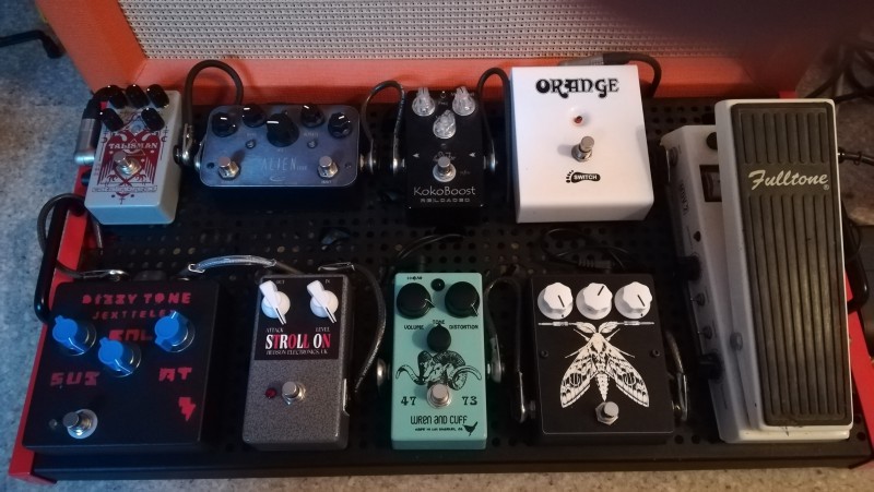 Cependant niveau gain, il faut pousser un peu le potard quand même, là je suis à 2h sur le potard de gain, c'est équivalent à la SD1 avec le gain à 9h.