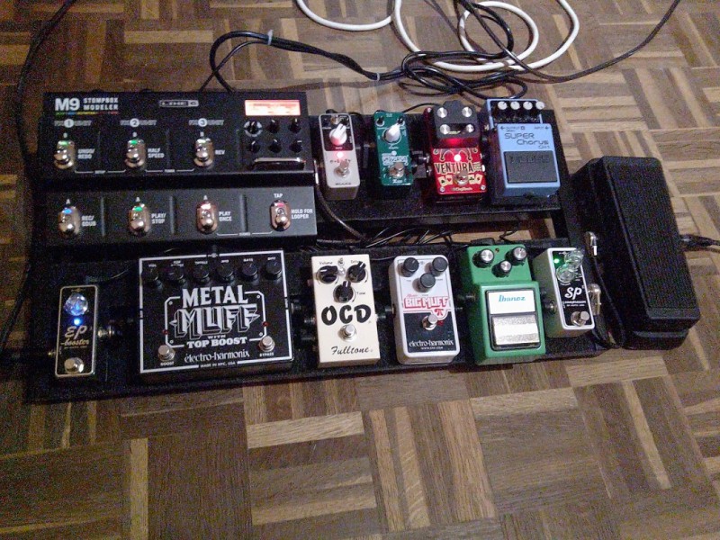 Grosso-modo la base de mon pedalboard reste la même, j’en ai juste rajouté autant que je pouvais.