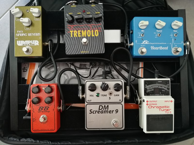 Grosso-modo la base de mon pedalboard reste la même, j’en ai juste rajouté autant que je pouvais.