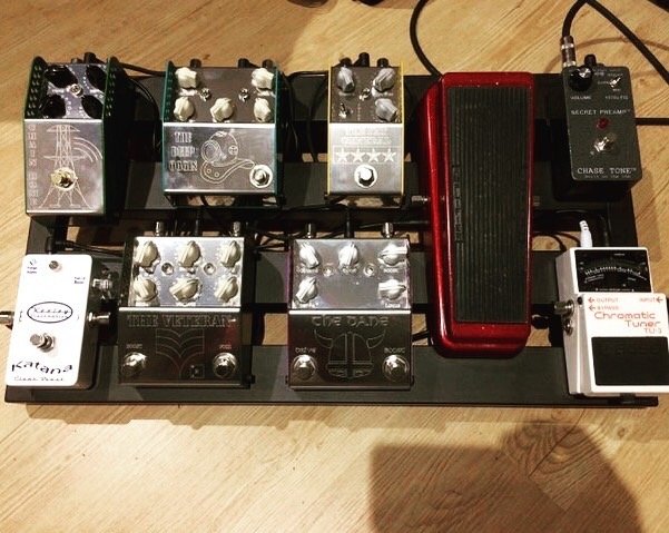 Le FC 50 a l'énorme avantage d'être alimentable par piles, des fois avoir un câble secteur à tirer à l'avant de scène c'est la galère... j'y branche une pédale de volume pour le gain du Yamaha, et la Wah a été bricolée en contrôleur pour la wah intégrée du GX700.