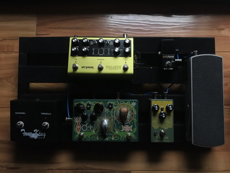 Earthquaker Devices Disaster Transport SR (le bout de chaîne destiné à apporter de la chaleur et de la profondeur au son, tout comme un bon vieux delay à bande - occasionnellement contrôle de nappe d'oscillation à la pédale d'expression)