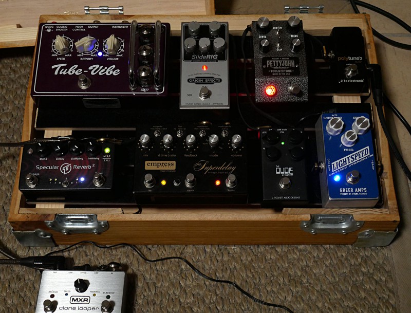 Polytune -> Cry Baby Bonamassa -> Fulltone ´69 mkII -> Fulltone OCD Ge -> Way Huge Overrated Special