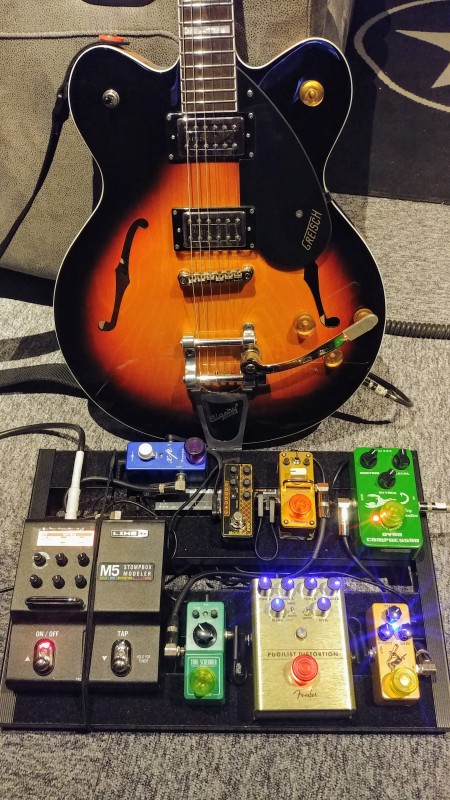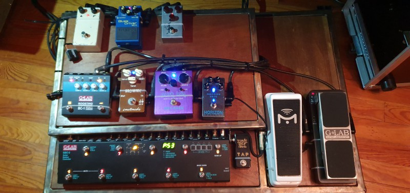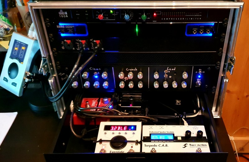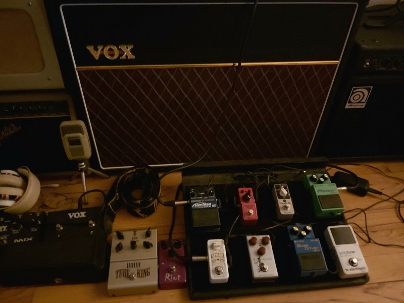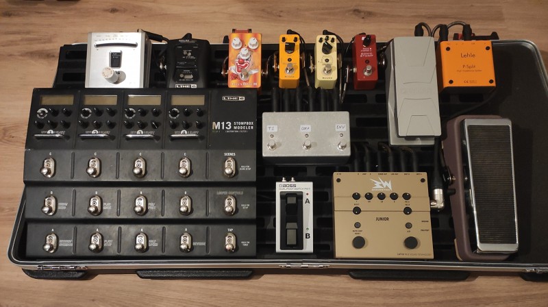 Peu de changement (Jumi m'a prêté la Mooer et c'est adopté avant d'investir peut-être un jour dans le Cab M), mais pas mal de réflexion, de routing depuis quelques mois.