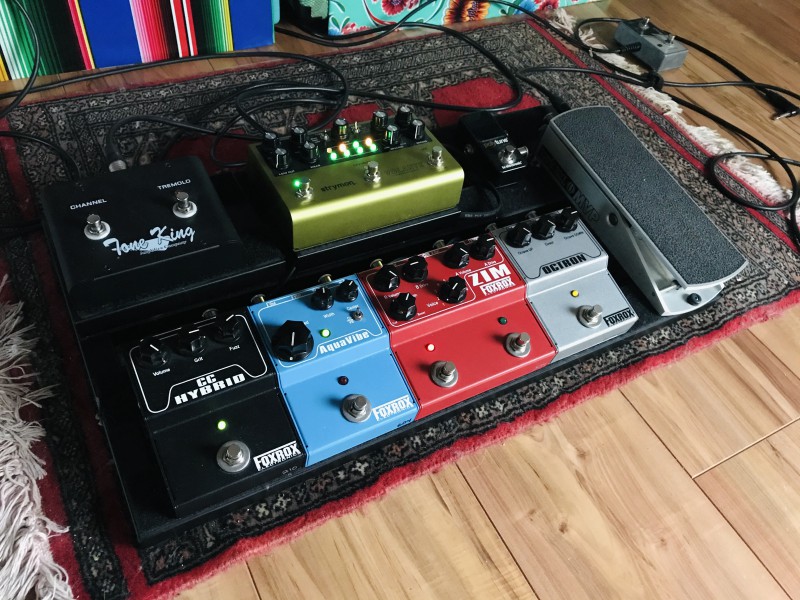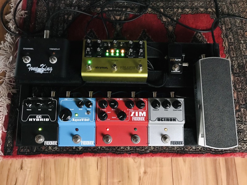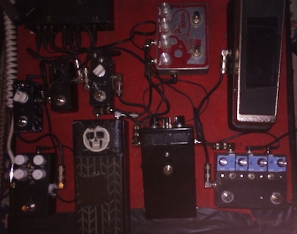 Guitare -> accordeur Korg -> compresseur -> 2 OD (une esprit Marshall et une esprit Dumble) ->chorus -> delay -> tremolo ou wha selon l'humeur du moment.