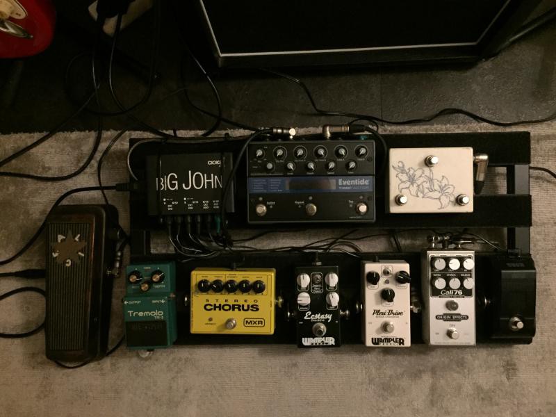 Tout est alimenté par le Big John sauf le tremolo ou la wha qui sont alimentés par un One Spot par manque de place sur la Big John.