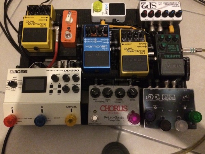 Là ou je suis moins fan c'est les mecs qui ont des énormes pedalboards avec des amplis de merde derrière. J'avais joué avec un groupe de Paris à gros pedalboards, mais dont l'un des amplis guitare avec claqué en route et qui n'était même pas au guitariste. J'ai du prêter mon ampli, c'était assez cocasse (d'autant que ce type c'était le mec d'une ex à moi ^^).