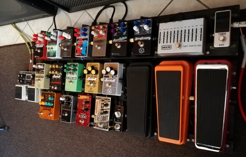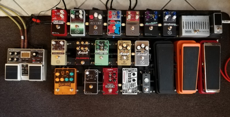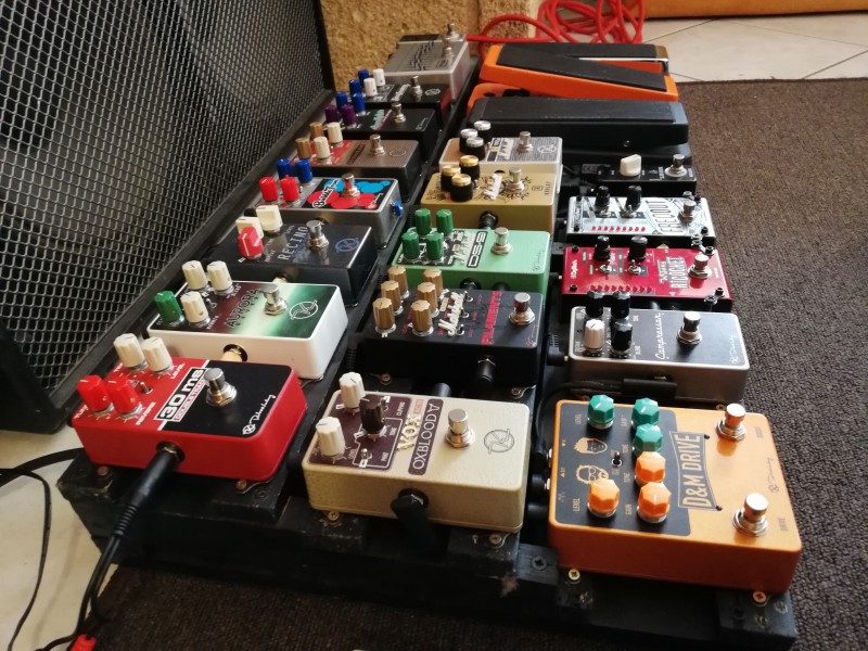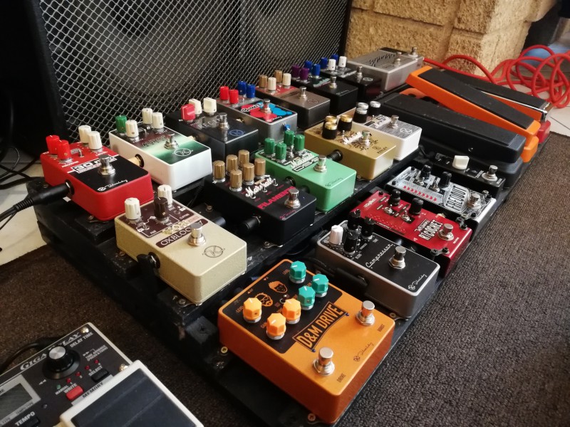L'idée, pour moi, était d'avoir sous le pied, bons nombres de ce que proposent la majorité des multi-effets, mais en format pédales. Dès lors, il m'a fallu quelques 18 mois pour réunir tout ce beau monde, arrêter de fumer et vendre un testicule aux enchères.