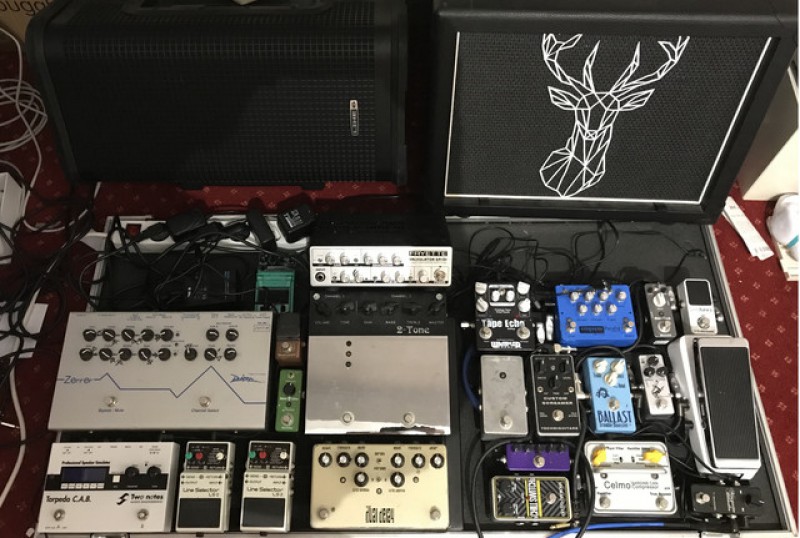 tu pourrais donner un peu plus de détail sur tes branchements les pédales ce que tu joue etc...