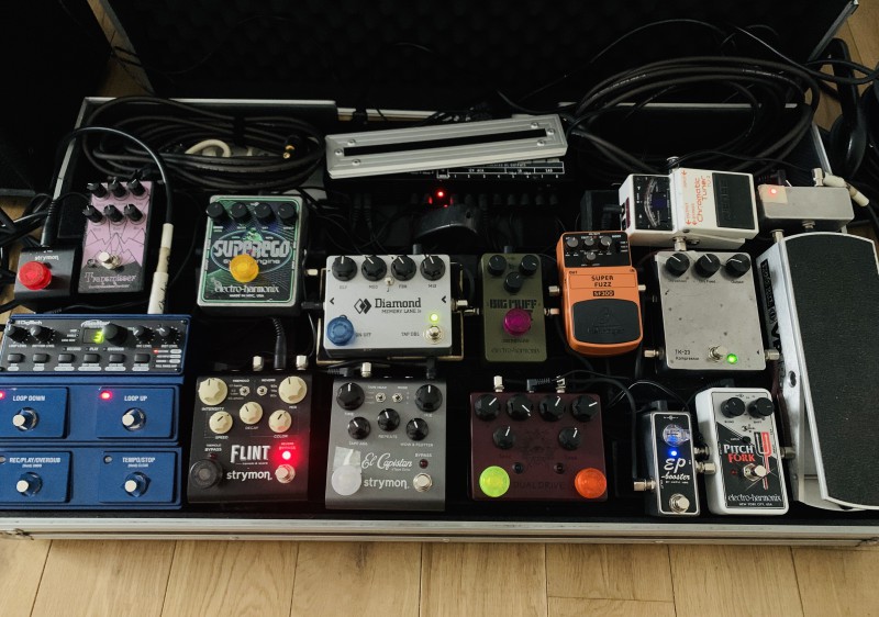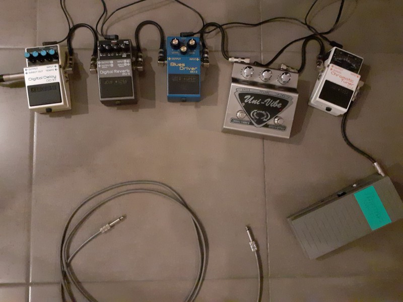 Autre substitution récente, le DD-3, définitivement mon delay Boss préféré. Mais à vrai dire je ne l'utilise quasiment jamais comme delay, il est surtout là pour la fonction HOLD, très utile pour composer. Comme toujours, le delay après la réverbe pour moi.