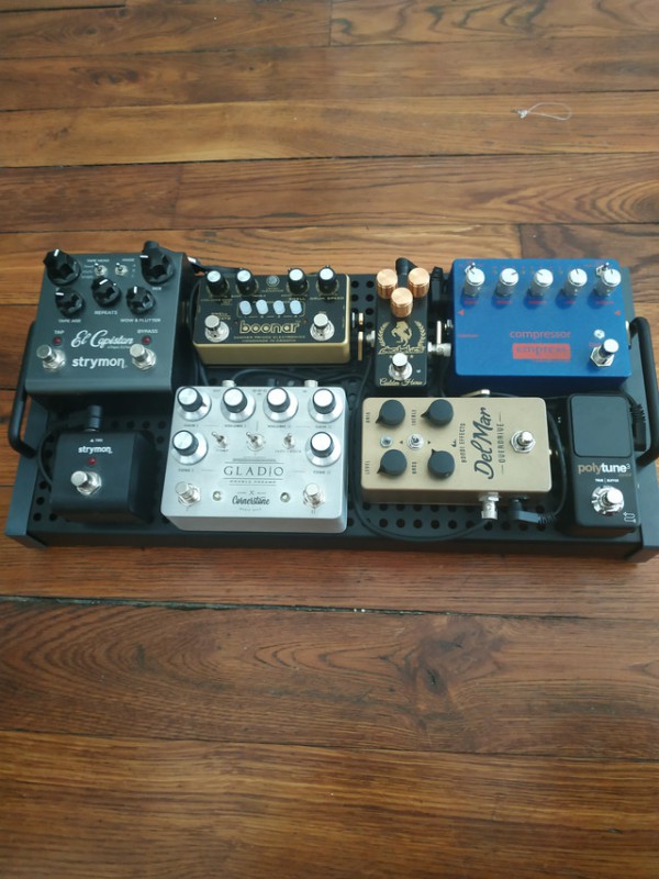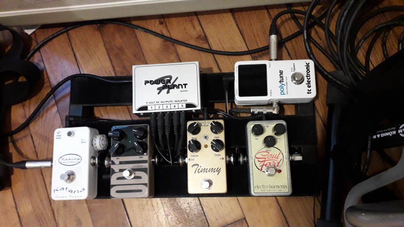 Petite mise à jour de mon board: retrait de mon danelectro Fish N' Chips (clone Boss GE-7 sans le souffle) et réagencement de la rangée du bas.