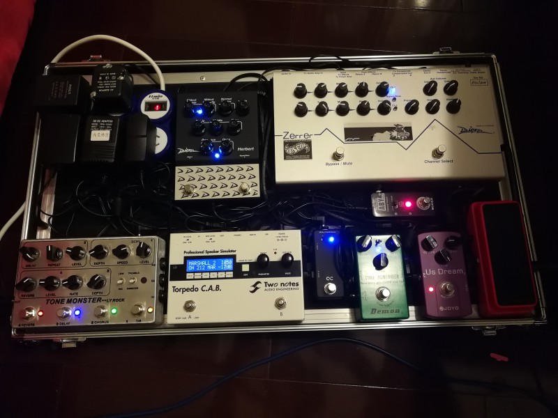Perso j'utilise un A/B avec le zerrer pour le clean et la herbert avec peu de disto (vers 10h) que je booste avec un TS808, et en faisant ca je retrouve completement ma tete herbert.