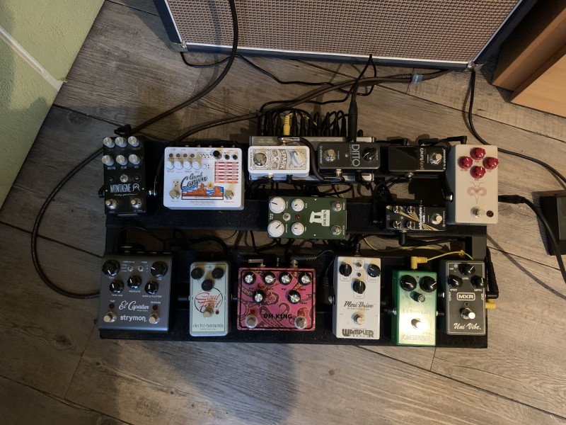 L'idée finale de mon board c'est d'avoir un truc assez polyvalent pour jouer chez moi sans m'embêter à changer les pédales en permanence, avec une orientation surtout pink floyd et Hendrix, puisque le reste de ce que je joue ne nécessite rien de fou.