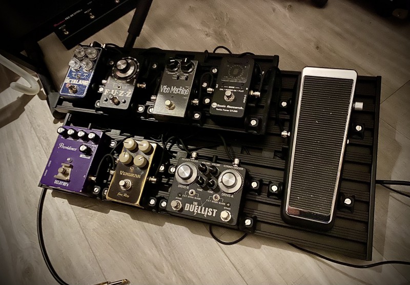 Je viens de refaire mon pedalboard pour 2021. J'avais quelques objectifs : caser la Bigsky suite à une occasion à un prix bien en deçà de la cote, rajouter une wah, et rationnaliser en virant les pédales qui me servaient moins.