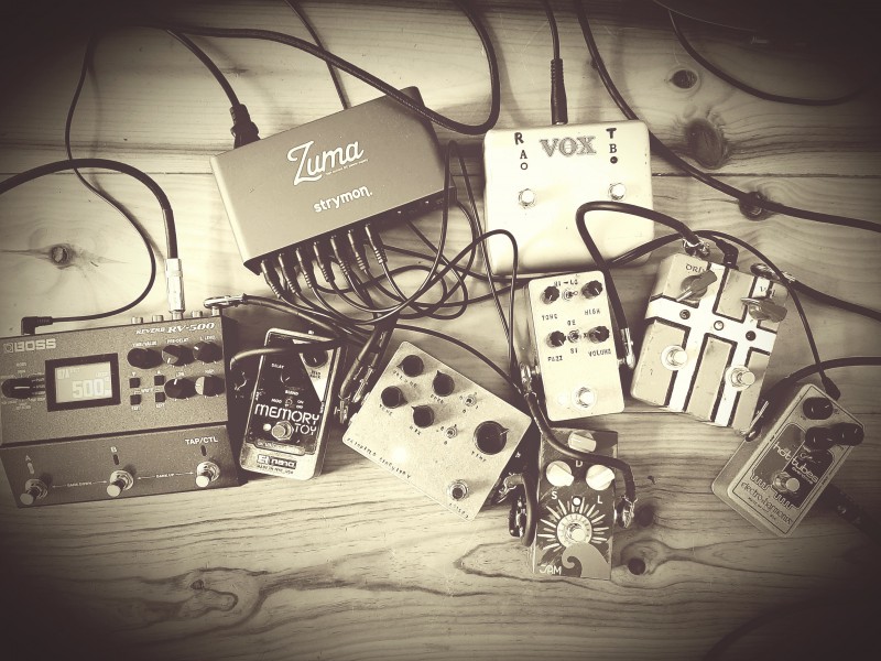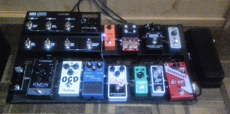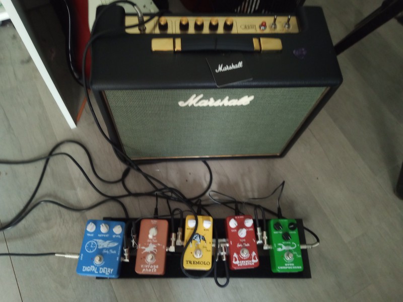 J'attends 3 cables + 1 alim boss 9V Dc et le pedalboard devrait resembler à ca :