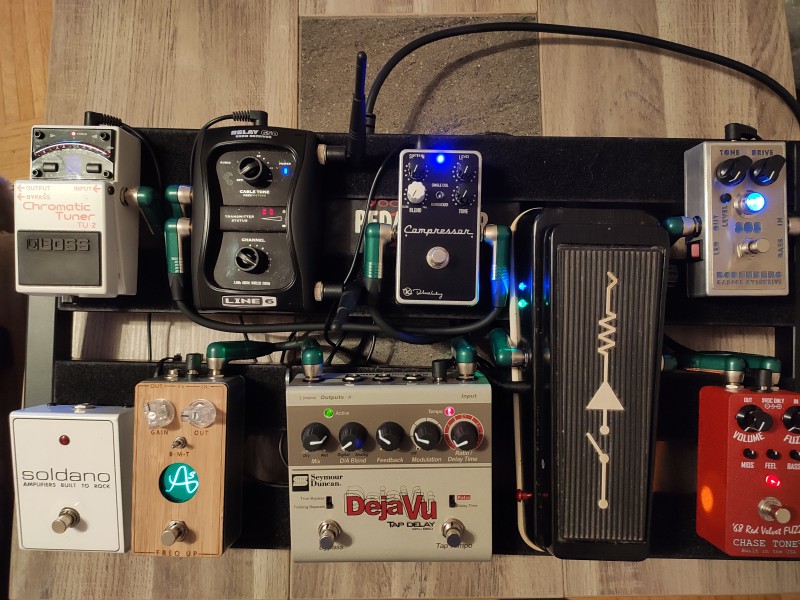 Pour le delay lui-même, j'arrive à pas mal m'en rapprocher avec le Brigadier. Pas exactement pareil, mais proche. En revanche, je suis devenu accro au tap tempo (une fonctionnalité qui n'avait jusqu'à présent aucun intérêt à mes yeux) et il a une polyvalence appréciable (tone + effet bucket loss + modulation). En plus il tient quand même mieux sur le Nano board donc j'ai tranché en sa faveur. J'en suis encore tout retourné.