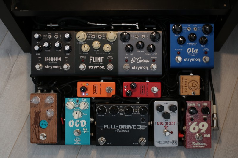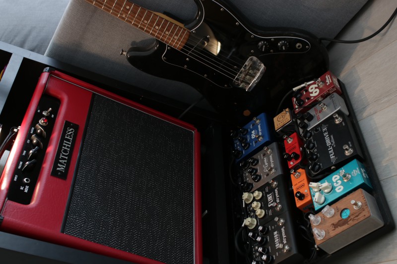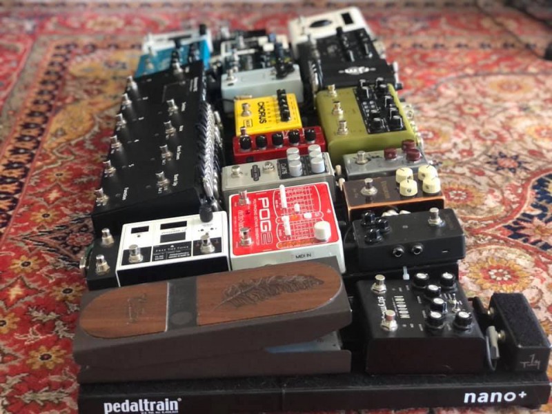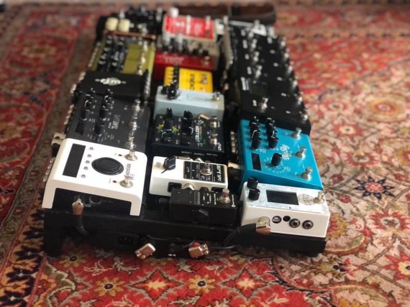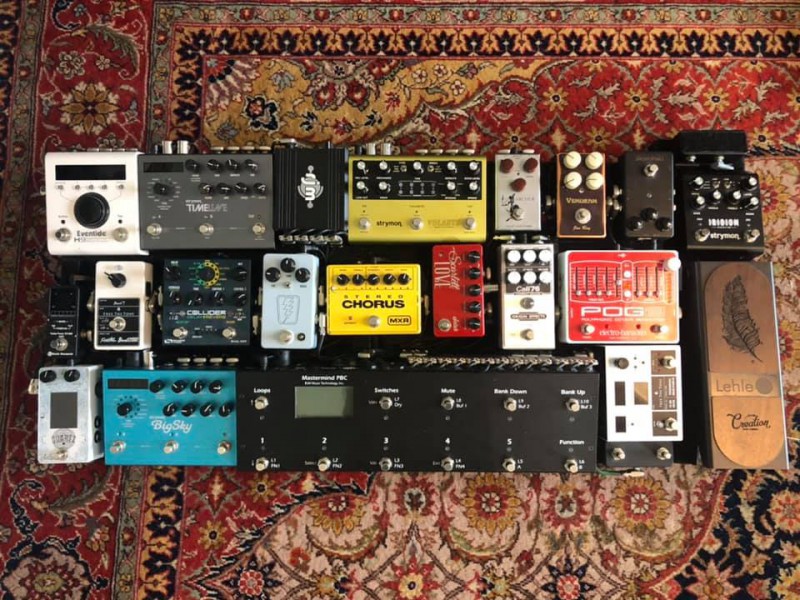 Le petit tape delay Fx qui va bien, l'Immerse pour de la reverb rapidos et le H9 pour tout le reste. Et évidemment une petite TS-like (la Plumes ici) que j'aime bien mettre devant... tout. en boost