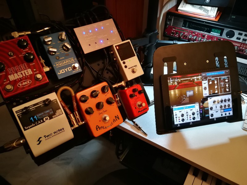 Ca fait un bout de temps que j'ai pas mis de photo de mon pedalboard qui a un peu évolué..