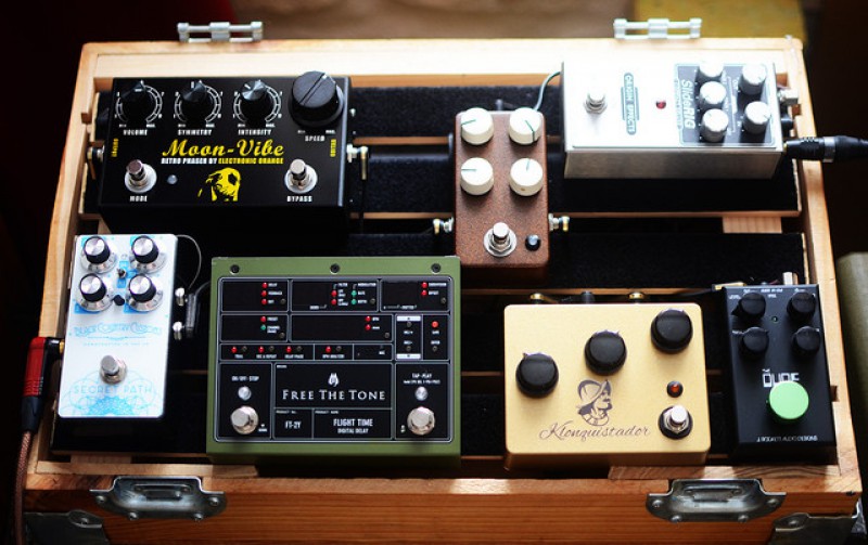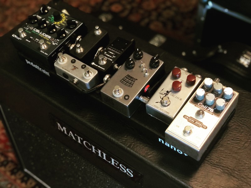 Toujours la ZVEX double rock comme point central, grosse nouveauté plus de fuzz traditionnelles, et retour à plusieurs échos sur le pedalboard.