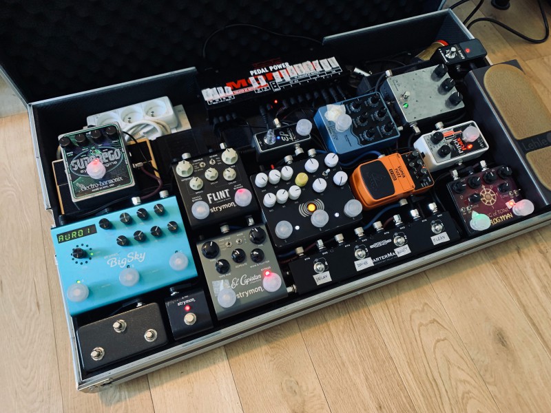 Faut que je teste avec notre setlist. Parce que du coup j'ai plein d'options de boost possibles, mais peut-être un peu redondantes. Je me demande si l'EP Booster va me servir au final, on verra ça. La 2ème interrogation c'est la place de la SuperEgo. Je pense que je la préfère avant les reverb/delay, je vais sans doute changer ça.