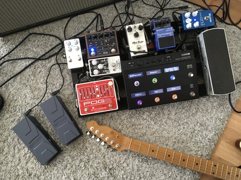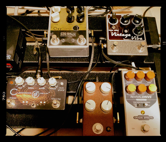 . En fait, sur la plupart de mes amplis, je suis parfaitement heureux avec un boost et éventuellement une wah. Après, tous les amplis ne réagissent pas de la même façon aux mêmes boosts, parfois ce sera l'EP booster, parfois la Klon-like ou la TS, du coup j'ai tout mis sur le même pedalboard comme ça il convient à tous mes amplis.