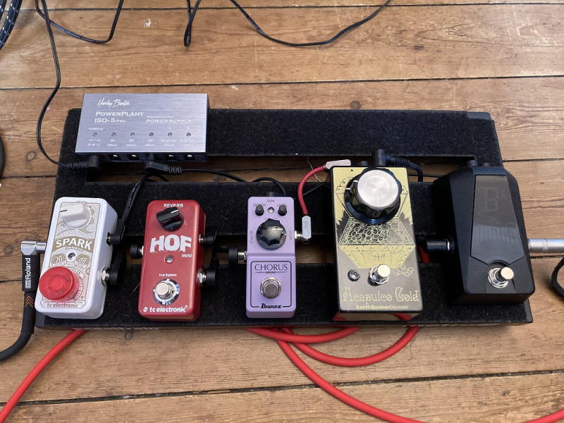 J'ai actuellement 3 pedalbord, 1 pour mon groupe et 2 autres pour les sons floydiens. Je dois avoir en tout plus de 20 ou 30 pédales dédiées au son Gilmour. Actuellement sur mon plus gros pedalboard, j'utilise un switcher G3, qui prend pas mal de place et impose un gros pedalboard assez lourd. J'aimerais pouvoir grouper ces 2 pédalboard en un mais le G3 est limité à 12 effets.