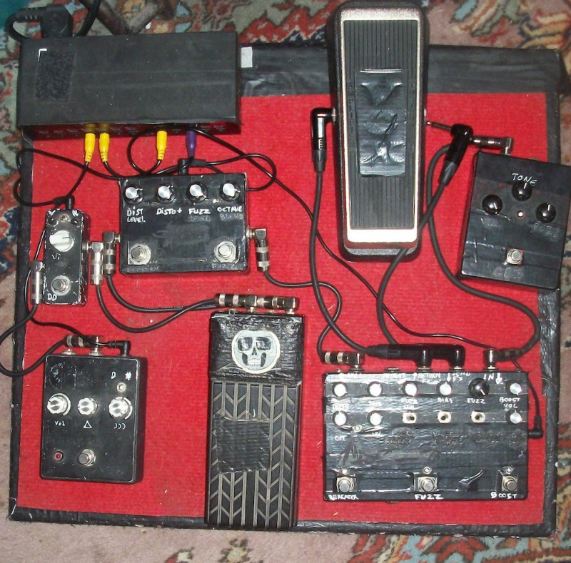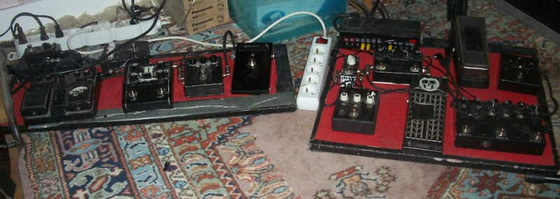 J'utilise juste une EHX Holy Stain. C'est le bonheur, clean/fuzz/od + reverb/tremolo sur une seule pédale.
