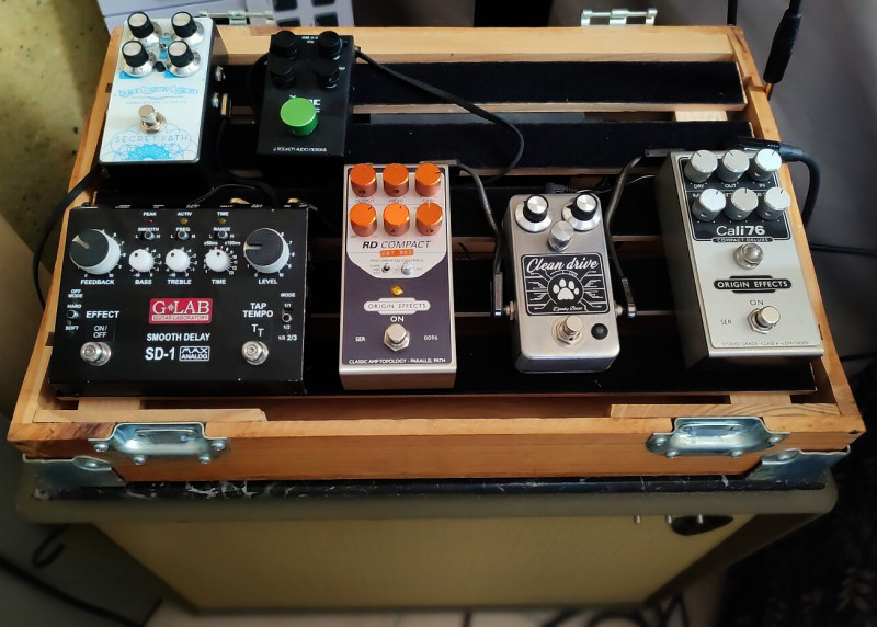 Là je vais changer quelques trucs, peut-être enlever l'eq qui me sert pour "réchauffer" un peu ma mandoline (je booste les basses et j'enlève un peu de médiums et d'aigus, on s'est rendus compte que ça passe beaucoup mieux dans le mix avec notre clavier) et remettre un meilleur delay, car si je n'ai rien à reprocher au Harley Benton en delay "simple" j'aimerais bien repasser sur un analo. Je pense me prendre le petit Ibanez.