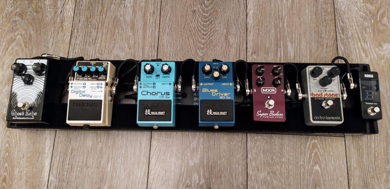 Mon pb n'a pas trop changé depuis des mois, et correspond radicalement à mes besoins de sons et de live : je me fous qu'il y ait du Fairfield, de l'Empress, de l'Eventide, du Earthquaker ou autre, chaque élément a aujourd'hui un rôle et une place bien précis.