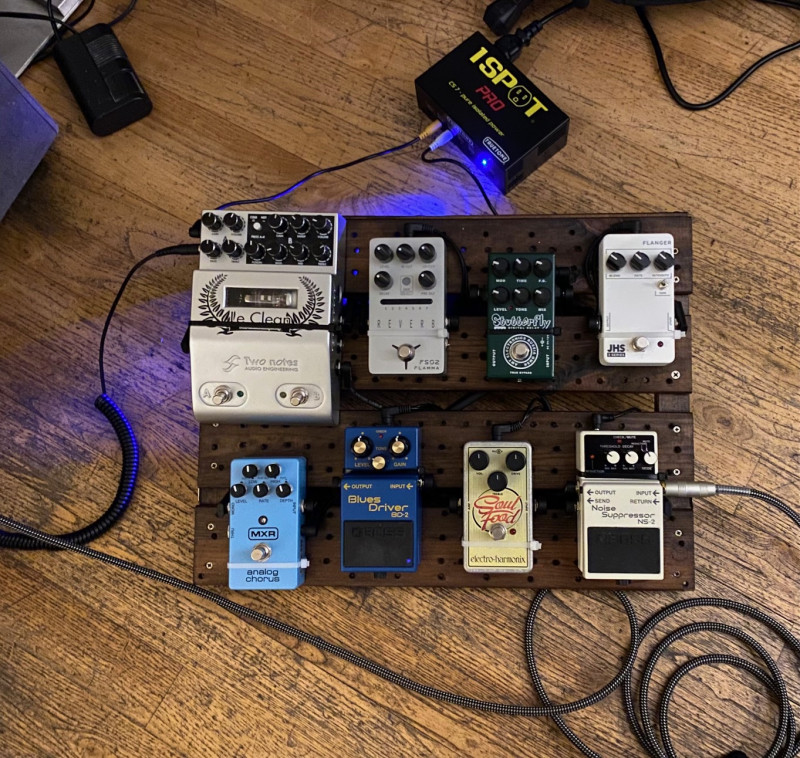 Sinon, mon board direct console n'a pas bougé depuis deux mois, à l'exception du chaînage (j'ai placé le noise gate avant le comp, c'est finalement plus efficace). Je kiffe bien le H9 qui me sert de plus en plus. Du coup, je vais probablement revendre mon Replicator (mon meilleur slapback de ma vie à moi, mais je n'ai pas tant d'usage du slapback live) pour m'offrir le tout nouveau H90. Je revendrai le H9 dans la foulée.