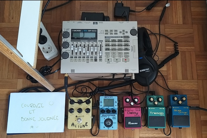 Chez moi je dois jouer et au casque et j'utilise des pédales que je branche dans un enregistreur multipistes Boss BR-600